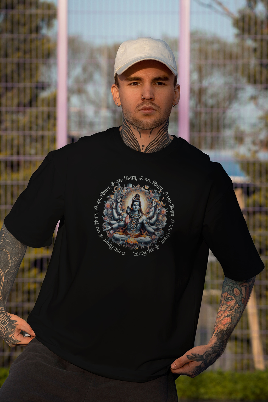 Embrace your uniqueness with the Karm Dharm Moksh Oversized Printed T-shirt, featuring Lord Shiva, the symbol of transcendence and spirituality. Let Shiva's symbolism inspire righteousness, harmonize karma, and aim for ultimate liberation - Moksha. Elevate your style and spiritual connection with this unique and comfy T-shirt.