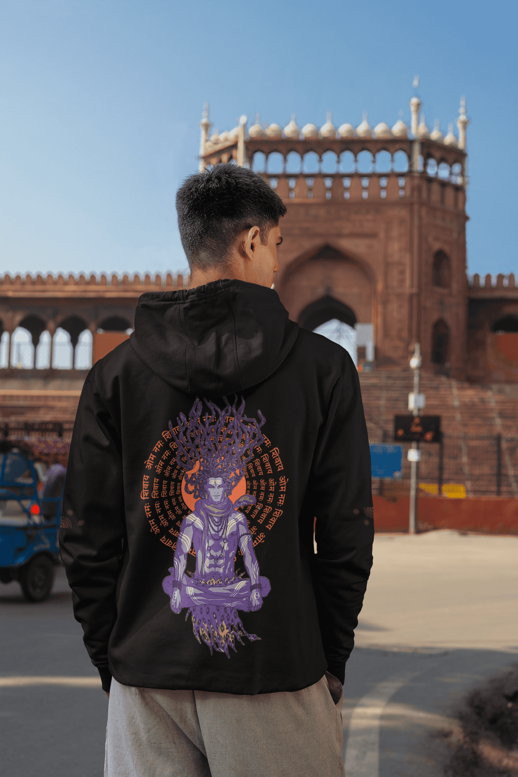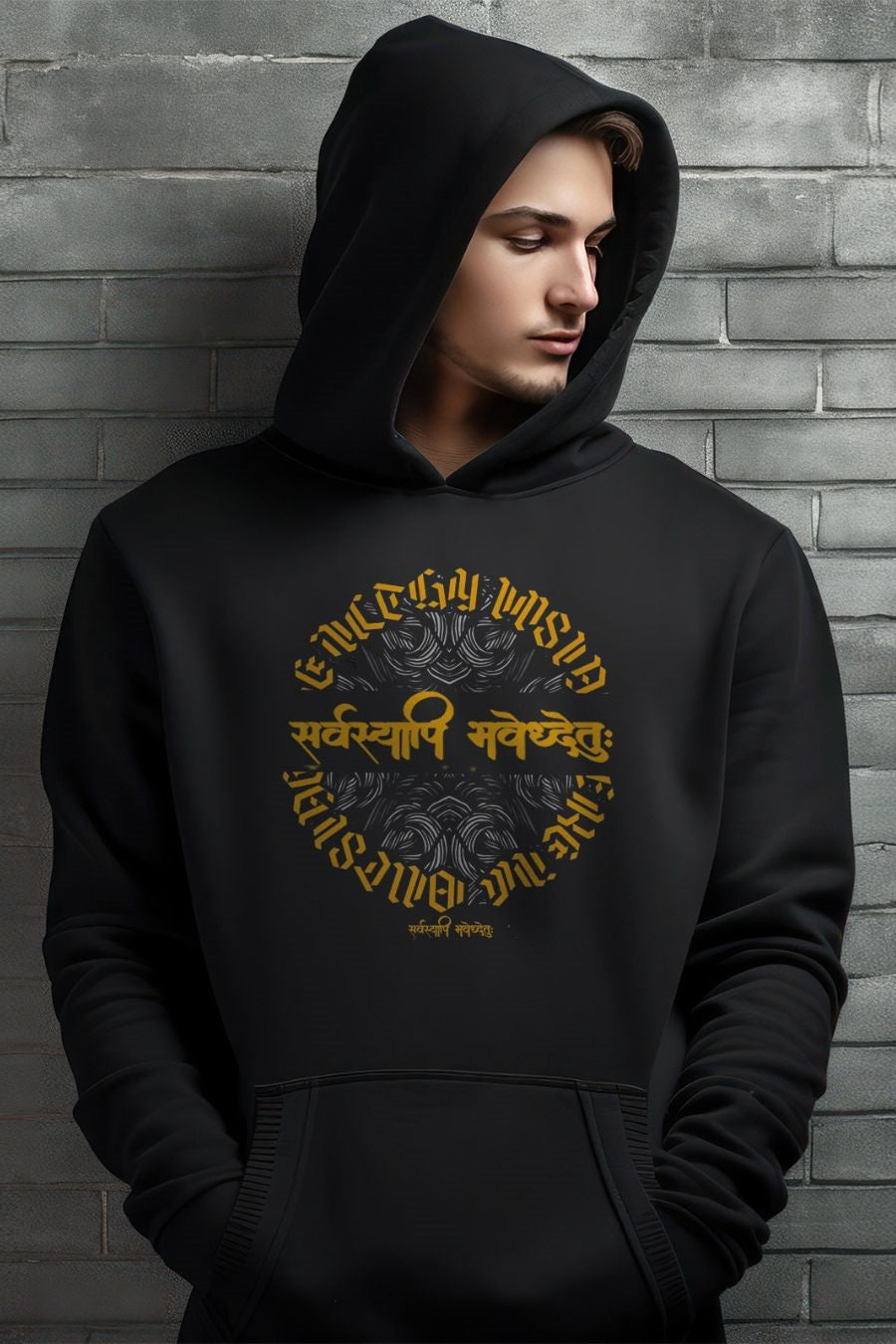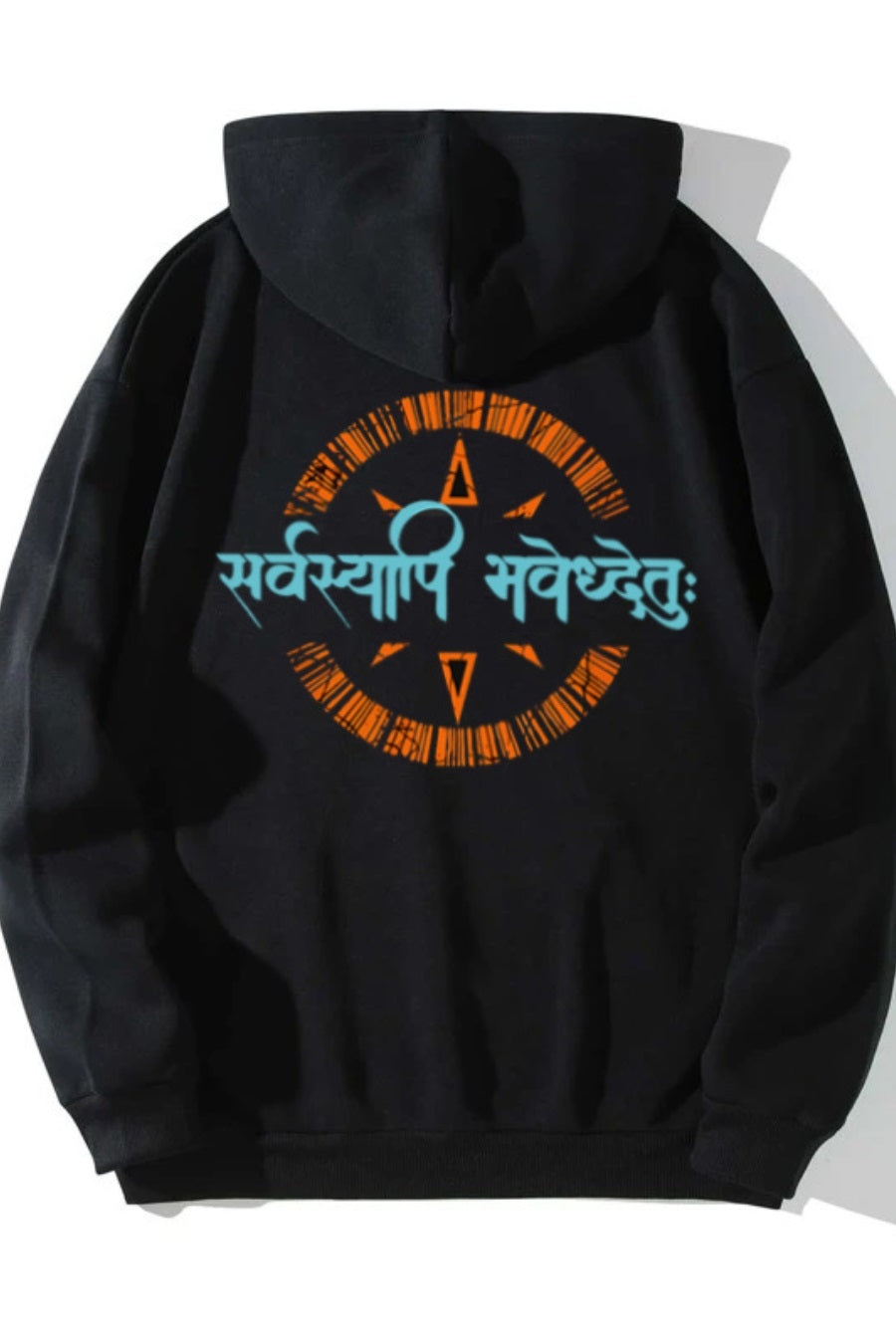 Product Name: Printed Hoodies Fit Type: Oversized Neck Style: Hoodies Graphic: Sarvyapi Bhavedhyetu 2  Pattern: Printed Material & Care - PC Fleece Sleeves Type: Full Sleeves Color: Black Category: Men Country of Origin - ...