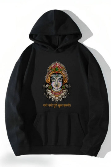 Product Name: Durga Printed Winter Hoodies Fit Type: Oversized Neck Style: Hoodies Graphic: Durga Pattern: Printed Material & Care - PC Fleece Sleeves Type: Full Sleeves Color: Black Category: Men Country of Origin - India...