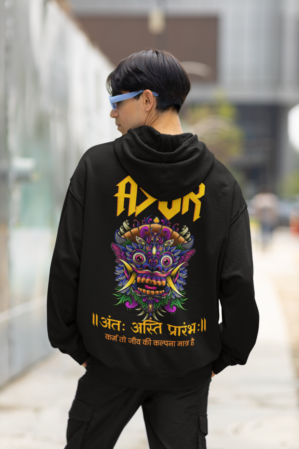 Product Name: Printed Hoodies Fit Type: Oversized Neck Style: Hoodies Graphic: Kaal Bhairav Pattern: Printed Material & Care - PC Fleece Sleeves Type: Full Sleeves Color: Black Category: Men Country of Origin - India Intr...