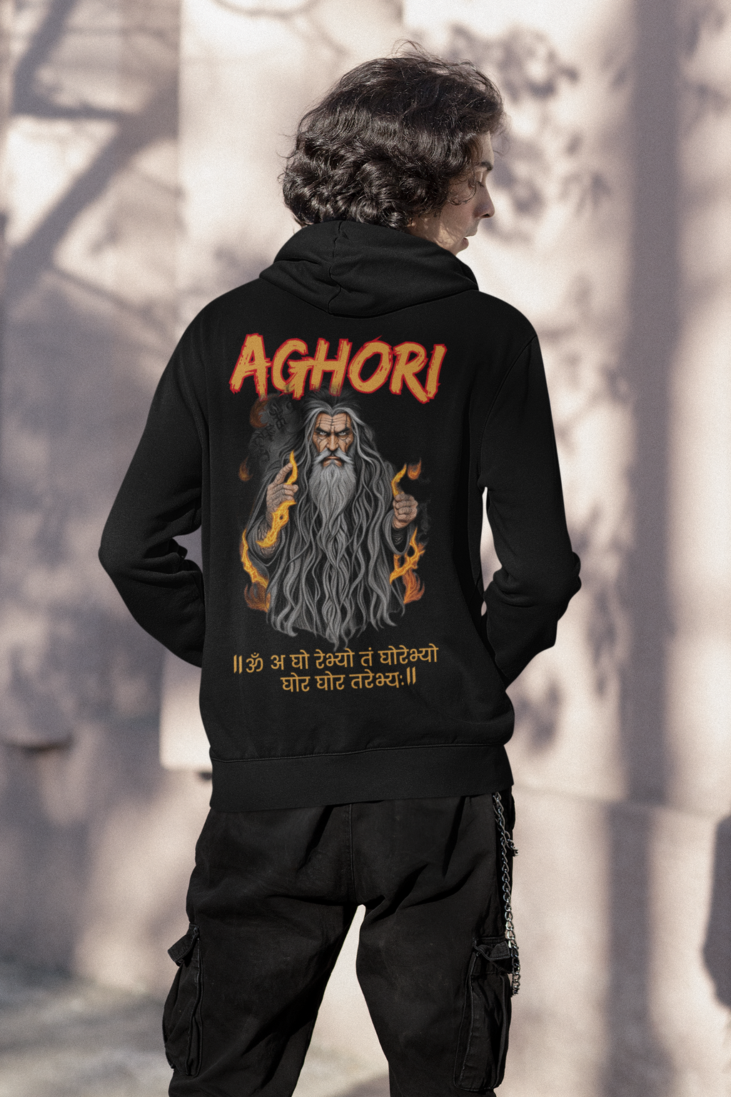 Product Name: Printed Hoodie Fit Type: Oversized Neck Style: Hoodies Graphic: Aghori Pattern: Printed Material & Care - PC Fleece Sleeves Type: Full Sleeves Color: Black Category: Men Country of Origin - India Introducin...