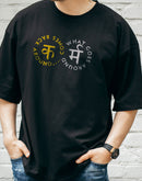Product Name: Karm Printed Regular/Oversized T-shirt Fit Type: Oversized/Regular Neck Style: Round Neck Graphic: Karm Pattern: Printed Fabric: Cotton Sleeves Type: Half Sleeves Color: Black Category: Men This Drop Shoulder...