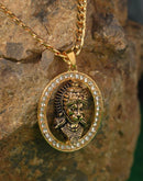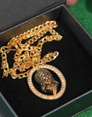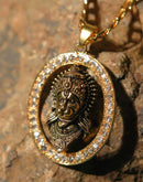 Product Name: Gold-plated Hanuman Face Diamond Alloy Pendant Locket Set