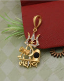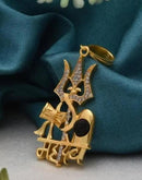 Product Name: Gold Plated Mahadev Damru Pendant with Chain Package Contains: It has 1 Chain with Pendant Material: Alloy Plated Color: As per availability Work: Gol Plated Plated Occasion: Casual...